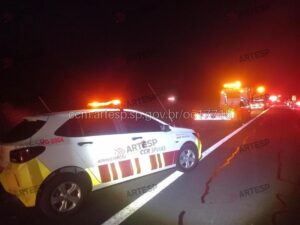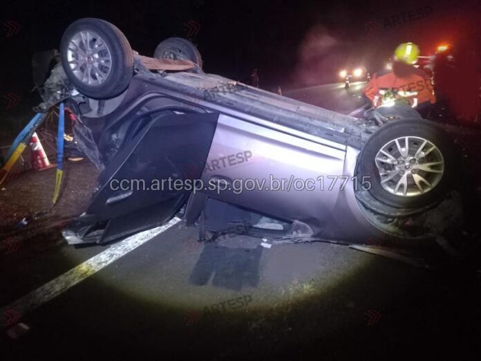 Conforme a Agência de Transporte do Estado de São Paulo (Artesp), o motorista disse que o pneu traseiro do lado esquerdo estourou e ele perdeu o controle da direção. O carro capotou na via.