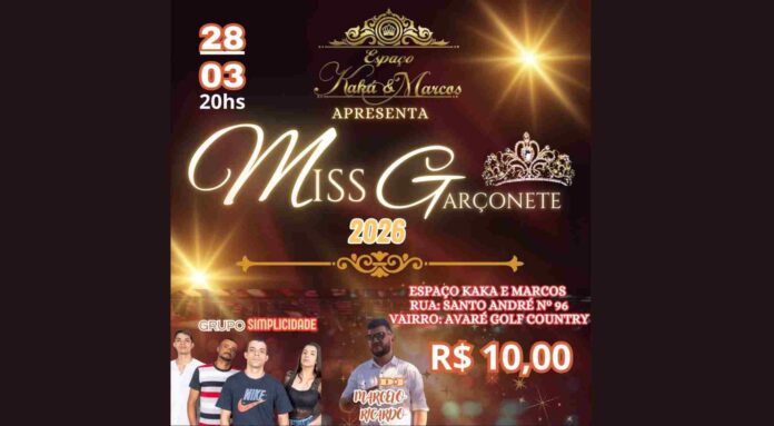 No próximo dia 28 de março, a partir das 20h, o Espaço Kaká & Marcos em Avaré será o palco de um evento que une charme, talento e muita música boa: o concurso Miss Garçonete 2026.