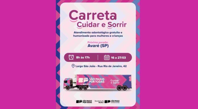 A prefeitura de Avaré, por meio da Secretaria Municipal da Mulher e da Família, anunciou a chegada da Carreta Odontológica ao município. A ação, realizada em parceria com a Secretaria Estadual de Políticas para a Mulher e o Movimento “SP Por Todas”, oferecerá serviços dentários gratuitos e especializados dentro do projeto “Cuidar e Sorrir”.