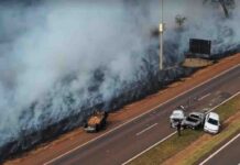Fumaça de incêndio cobre pista de rodovia e provoca engavetamento em Jaú