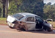 Mulher é arremessada após carro capotar em rodovia de Itapeva