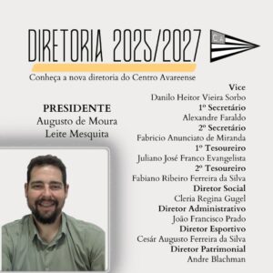 A nova diretoria do clube Centro Avareense, que tem à frente o presidente Augusto de Moura Leite Mesquita, já tomou posse com o compromisso de aprimorar continuamente a instituição e construir um clube cada vez melhor para todos os associados.