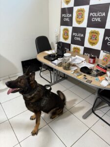 Na ação, a equipe apreendeu uma porção de maconha de 36g, outra de 2,8g, duas porções de “dry” pesando 9,9g e três porções da mesma droga, somando 31,6g. Também foram recolhidas embalagens com resquícios de entorpecentes, uma tesoura com vestígios de droga, uma balança de precisão e dois iPhones 14.