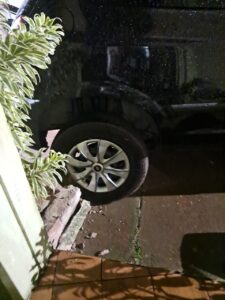 Com o choque, o carro atingido quase foi parar quase dentro da casa da munícipe. A reportagem será enviada a secretaria de Comunicação da prefeitura.