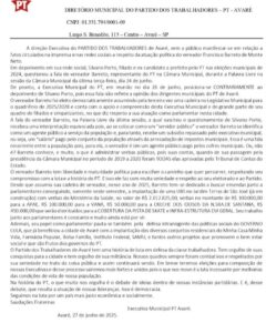 O diretório do Partido dos Trabalhadores (PT) de Avaré emitiu recentemente uma nota repudiando a fala do candidato Silvano Porto e em defesa do vereador petista Barreto do Mercado.