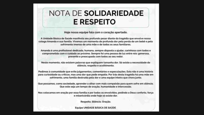 A Unidade Básica de Saúde manifesta seu profundo pesar diante da tragédia que envolve nossa colega Amanda e sua família. Vivemos um momento de profunda dor pela perda de um bebê e pelo sofrimento imenso de uma mãe e de todos os seus familiares.