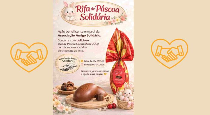 Com a proximidade da Páscoa, a Associação Amigo Solidário lançou uma campanha especial para unir a tradição dos chocolates a uma causa nobre. A instituição está realizando uma Rifa de Páscoa Solidária, cujos recursos serão integralmente revertidos para a manutenção dos projetos que atendem, atualmente, 60 crianças em situação de vulnerabilidade social por meio do Serviço de Convivência e Fortalecimento de Vínculos (SCFV).