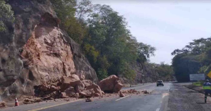 O trecho segue parcialmente interditado, com tráfego controlado por sinalização, desvio pelo acostamento e, em alguns momentos, sistema “pare e siga”.